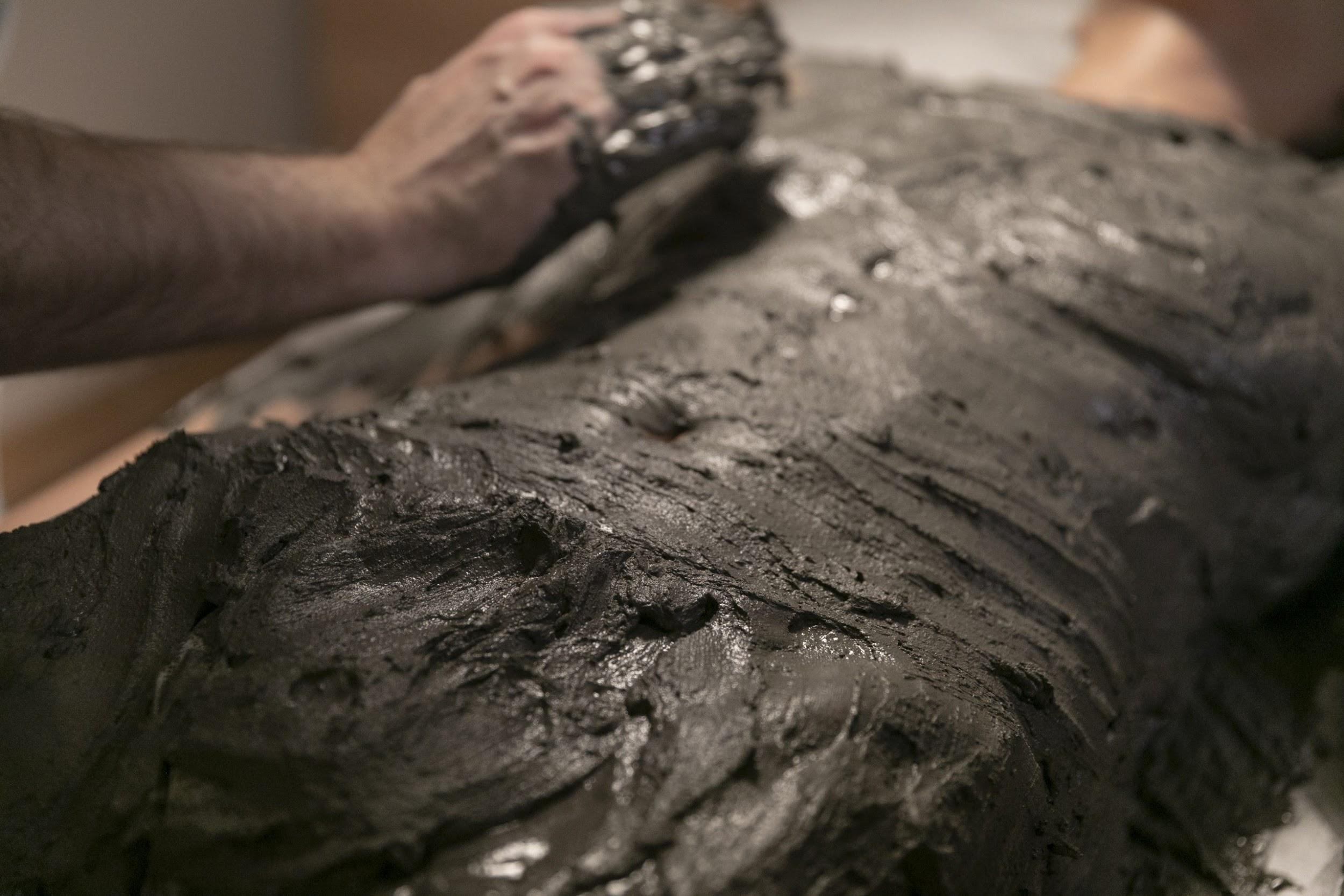 Application of warm medicinal mud to relieve joint and muscle pain, detoxify the skin, and soothe inflammation.